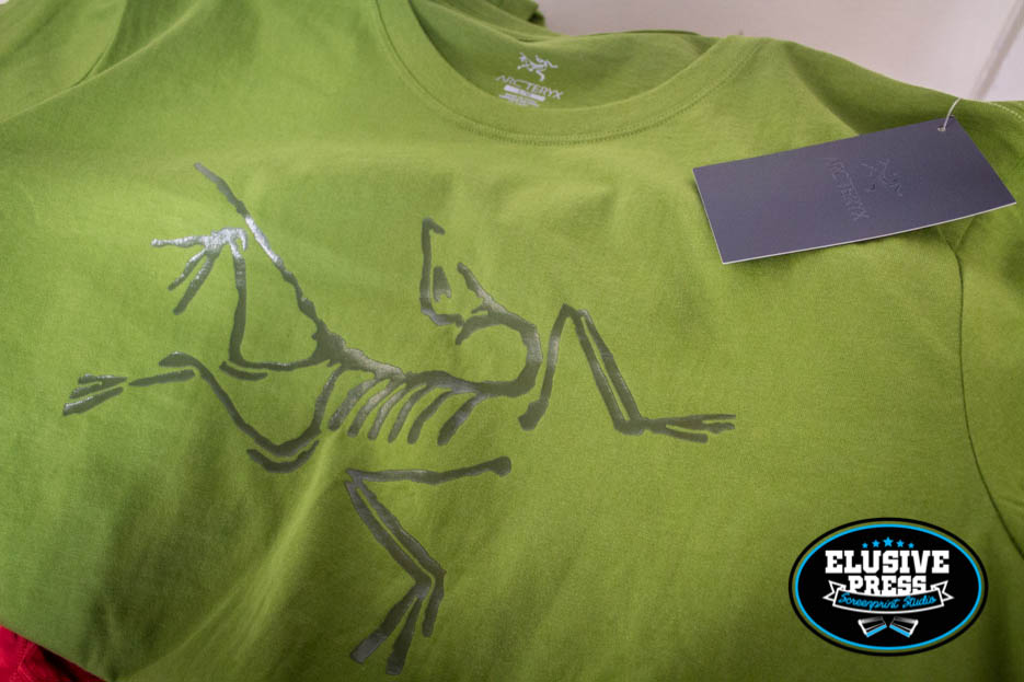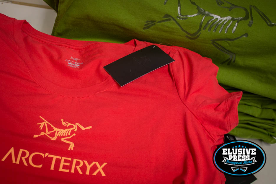 Check us out, screen printing for the big boys. It was a shock to see this job in our inbox. These are t-shirts we printed for outdoor hiking brand ‘Arcteryx’